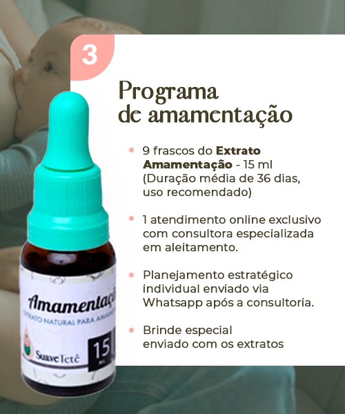 - 9 frascos do Extrato Amamentação – 15 ml (duração média de 36 dias, conforme uso recomendado)